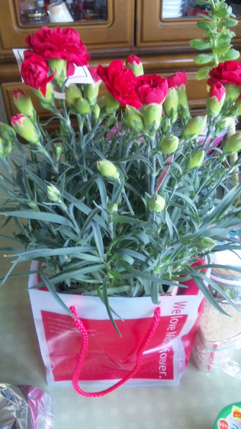 メチョ家では、メチョからはカーネーションの鉢植えを、