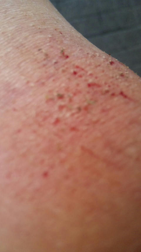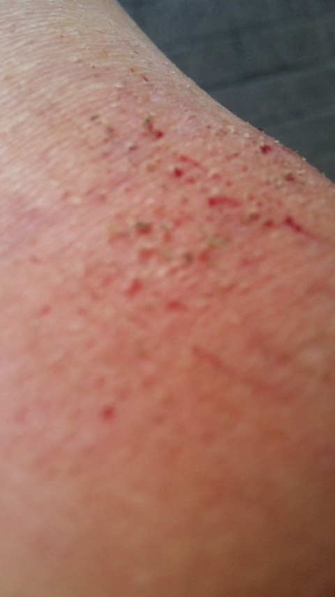 短パンで散歩してたから、手の平所か両足も擦りむけ血、垂れ流し(´;ω;`)