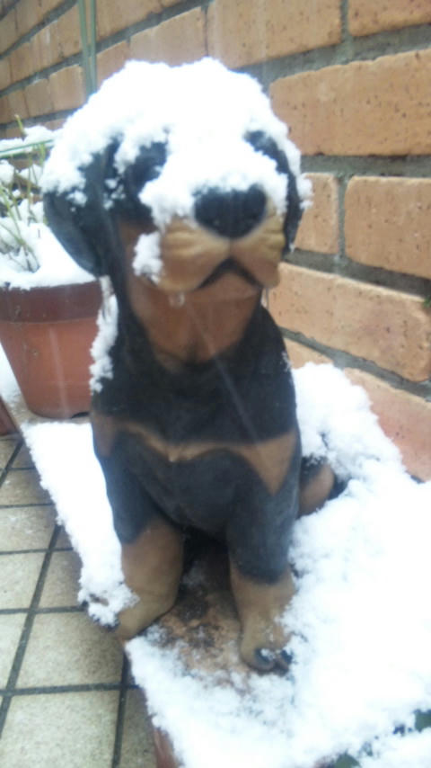 我が家の犬に雪が積もりました。