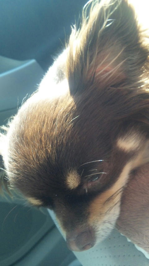 ショコラは車でお留守番。