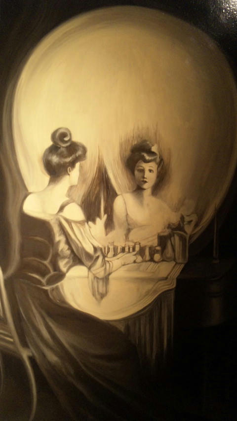 近くで見ると、女の人と化粧台に!!