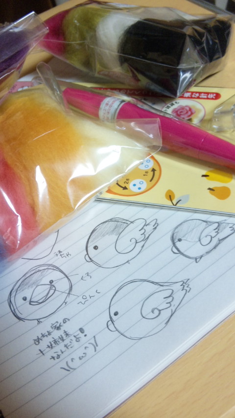 羊毛フェルトのキットはさっそく金曜から会社で作り始めたよ(=°ω°)ノ